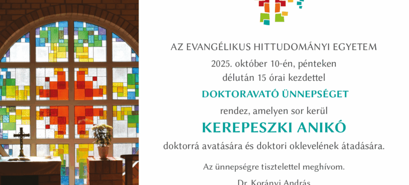 Az Evangélikus Hittudományi Egyetem 2025. október 10-én, pénteken 15 órai kezdettel doktoravató ünnepséget rendez.