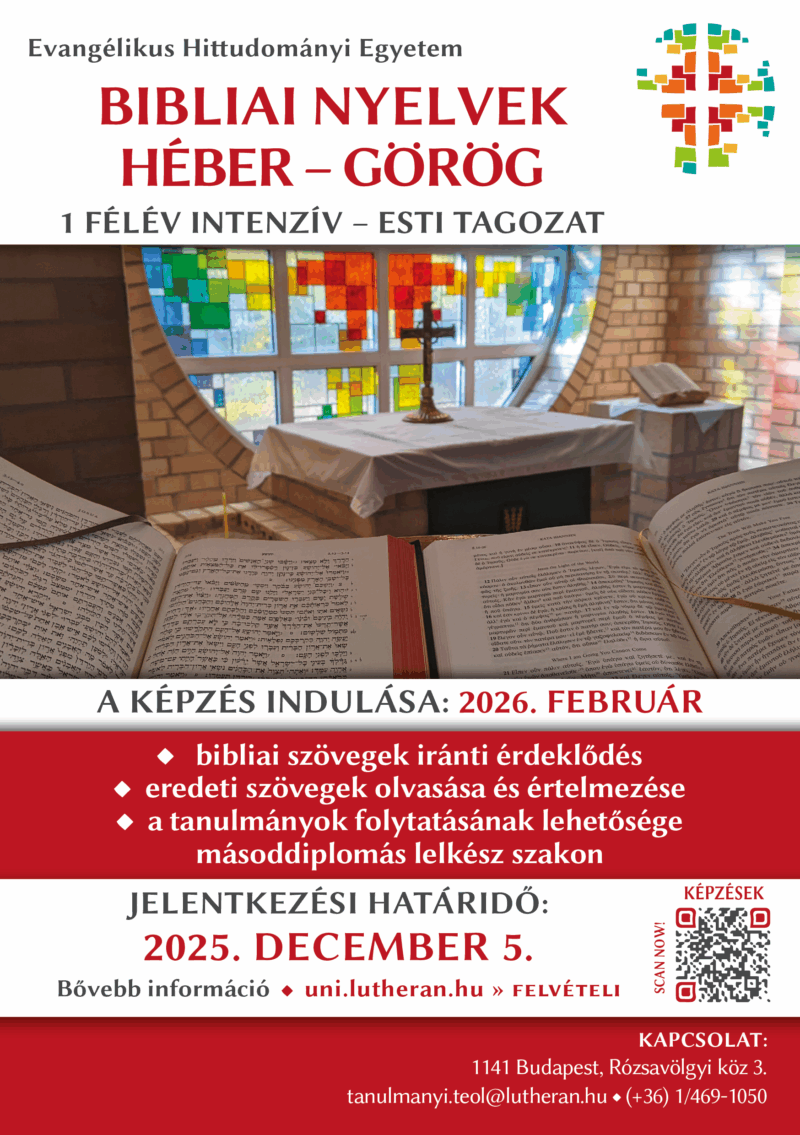 Keresztféléves felvételi az Evangélikus Hittudományi Egyetemen