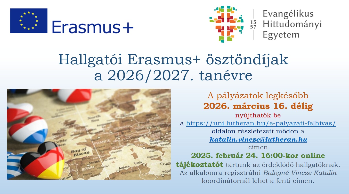 Szeretnél új tapasztalatokat szerezni, szakmailag fejlődni és egy inspiráló közösség részévé válni? Most itt a lehetőség! Szeretettel várjuk az Erasmus ösztöndíjra pályázni kívánó hallgatók jelentkezését.